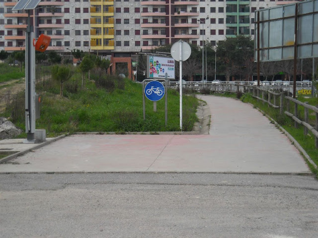 Fim desta parcela de ciclovia, no lado da Costa Nova, com a indicação da possibilidade de ir-mos até à Barra.