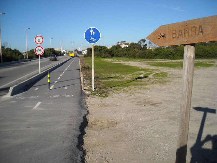 Fim desta parcela de ciclovia, no lado da Costa Nova, com a indicação da possibilidade de ir-mos até à Barra.